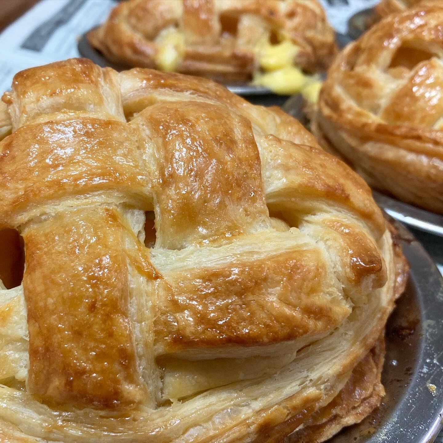 私が作るアップルパイは独自のカスタードクリームと、たっぷりりんごがゴロゴロ入ったシンプルなアップルパイです。
